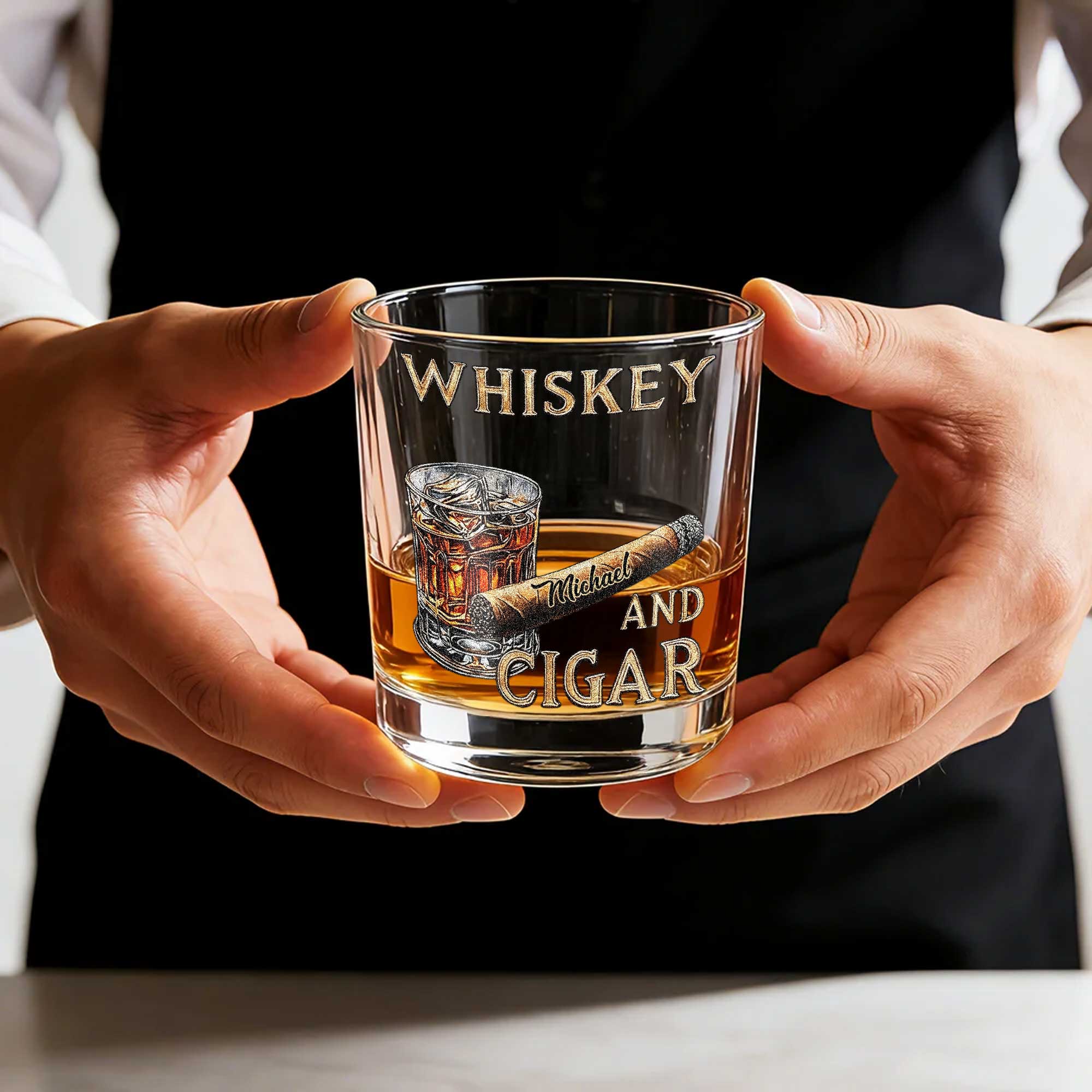 Classic Whiskey & Cigar Design - This 10oz old fashioned whiskey glass features a stylish combination of whiskey and cigar-themed detailing, giving it a bold and masculine look. The balanced shape with a sturdy base offers a comfortable grip for everyday sipping or special moments.