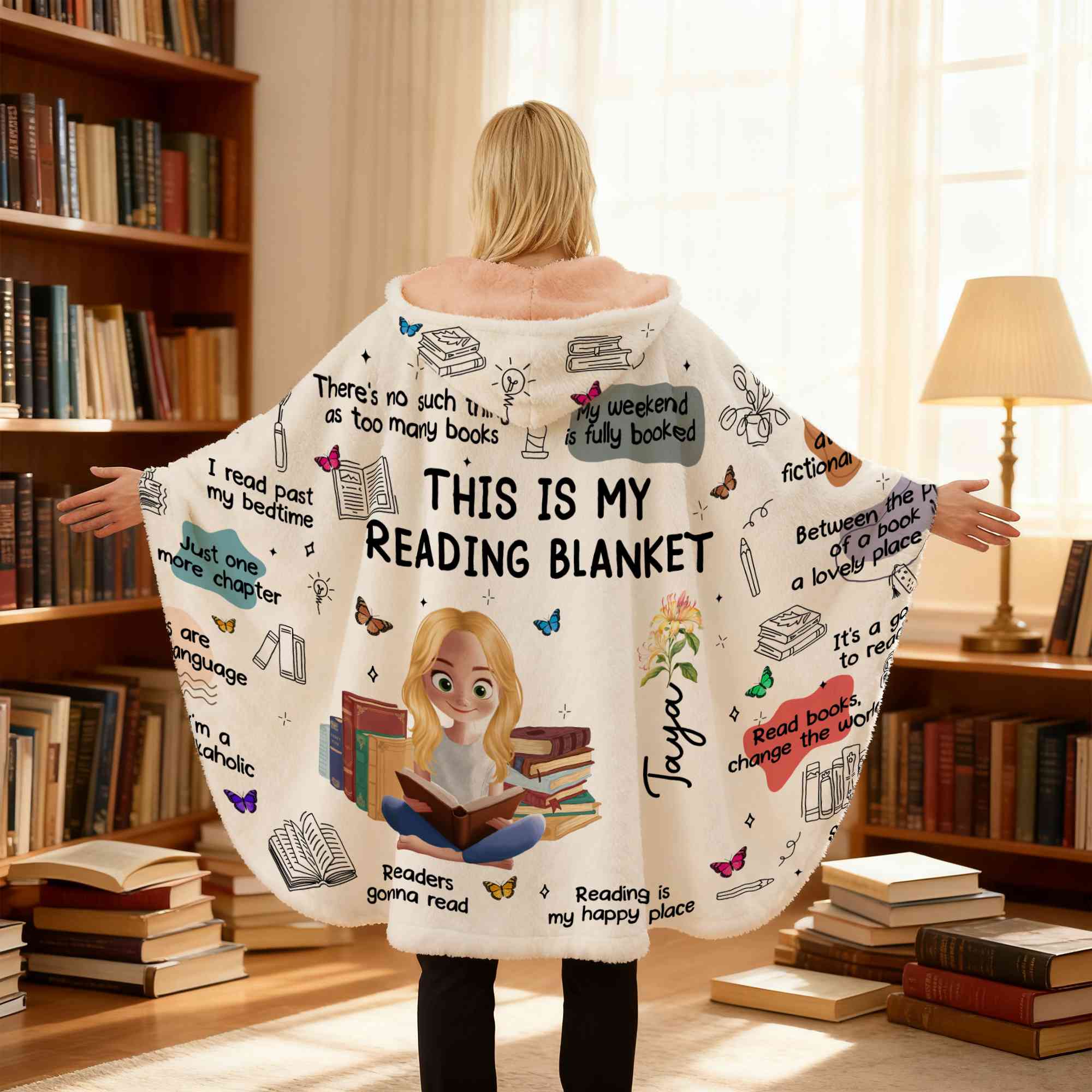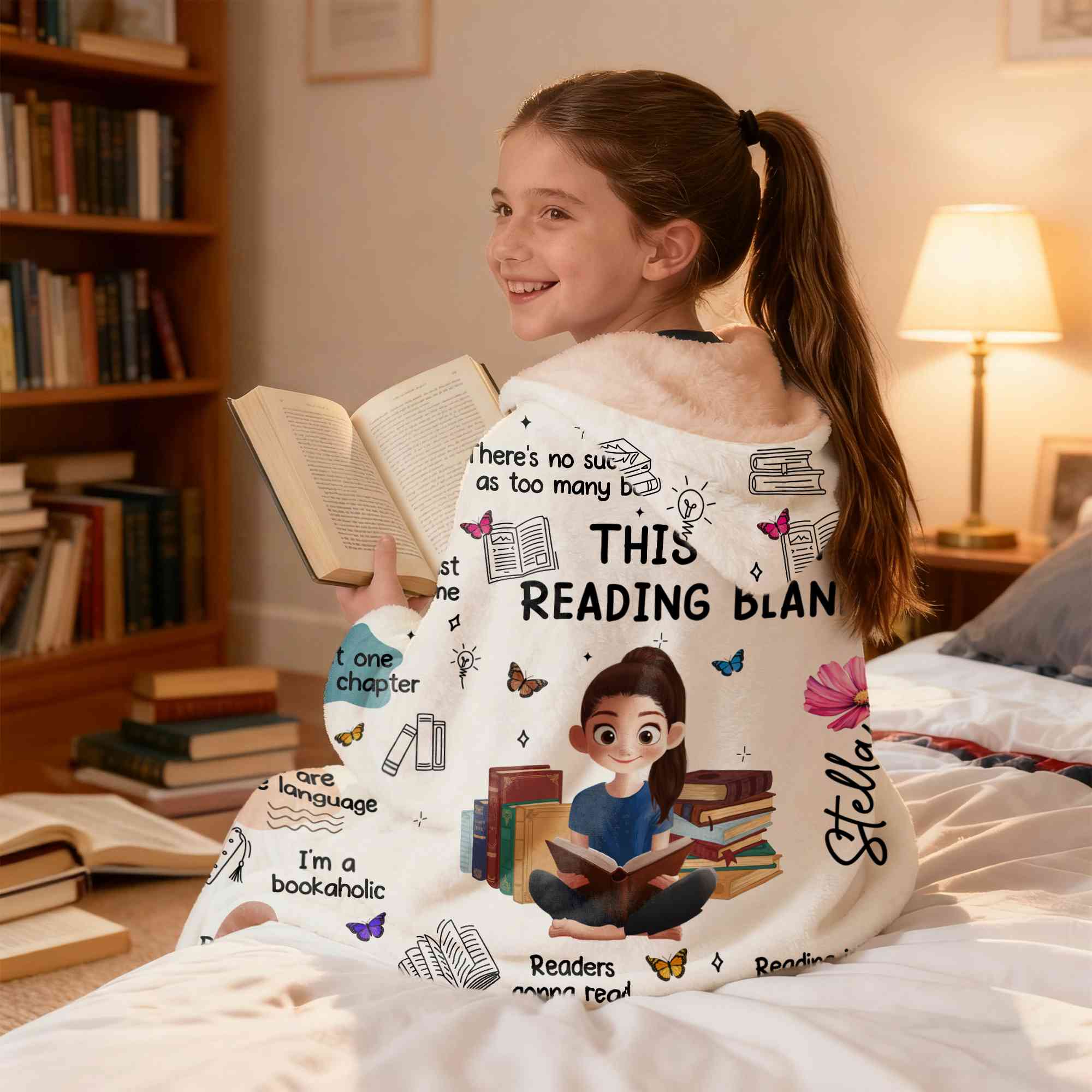 Personalized Book Lovers Blanket with Name & Birth Flower, Books Quotes Blanket Hoodie, Birthday/Christmas Gift for Women/Bookworm/Book Lovers
