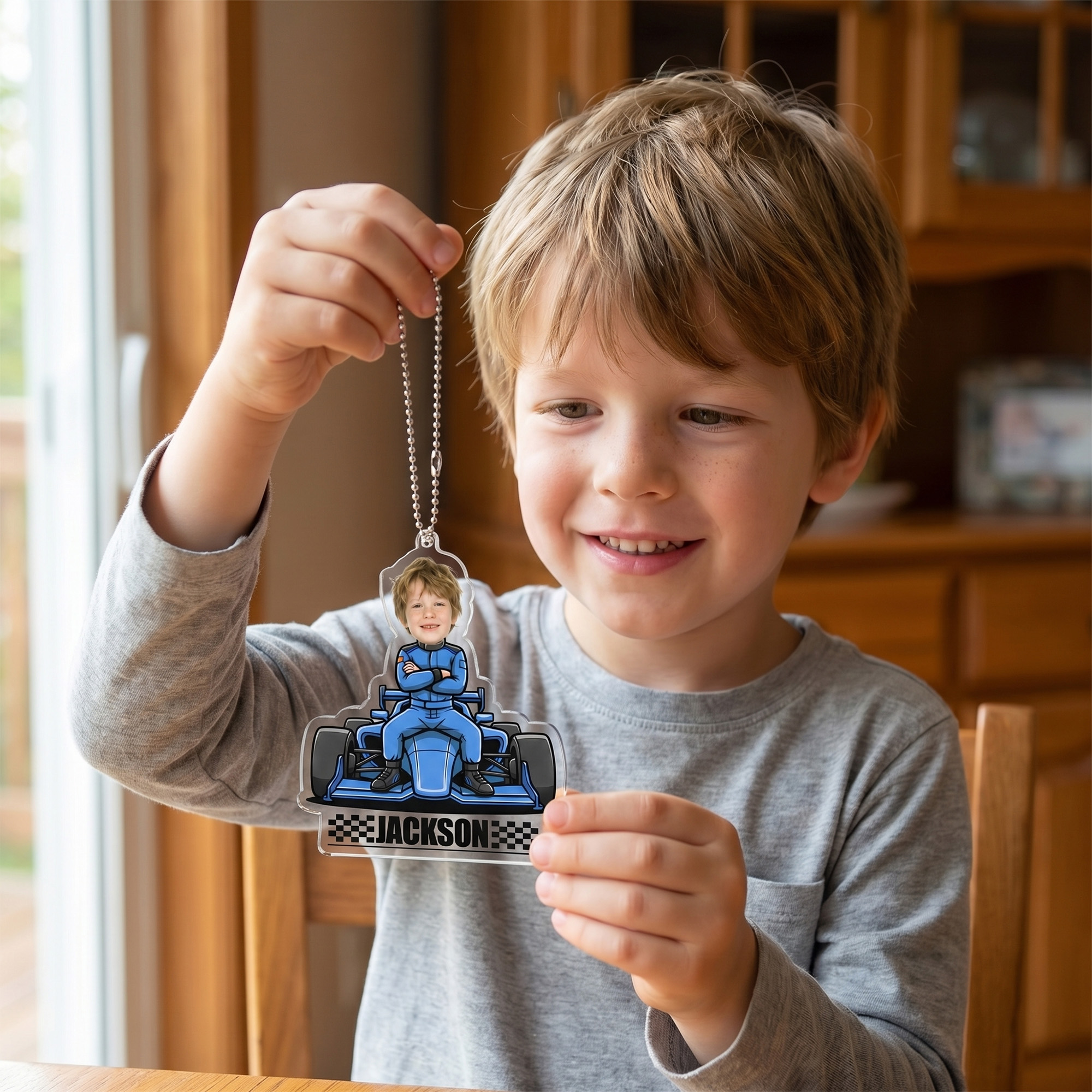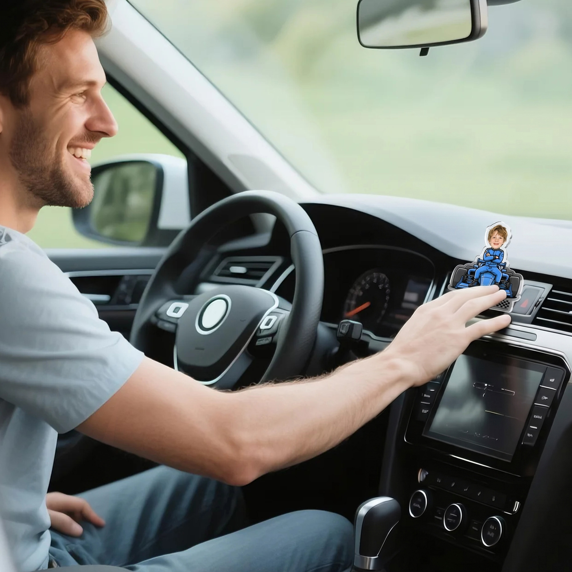 Personalized Racing Theme - Designed as a cute cartoon racing driver with a personalized face photo and name, this car ornament brings playful racing energy to any vehicle. The vibrant racing car style adds personality to your interior while showing off a love for speed in a fun and creative way.
